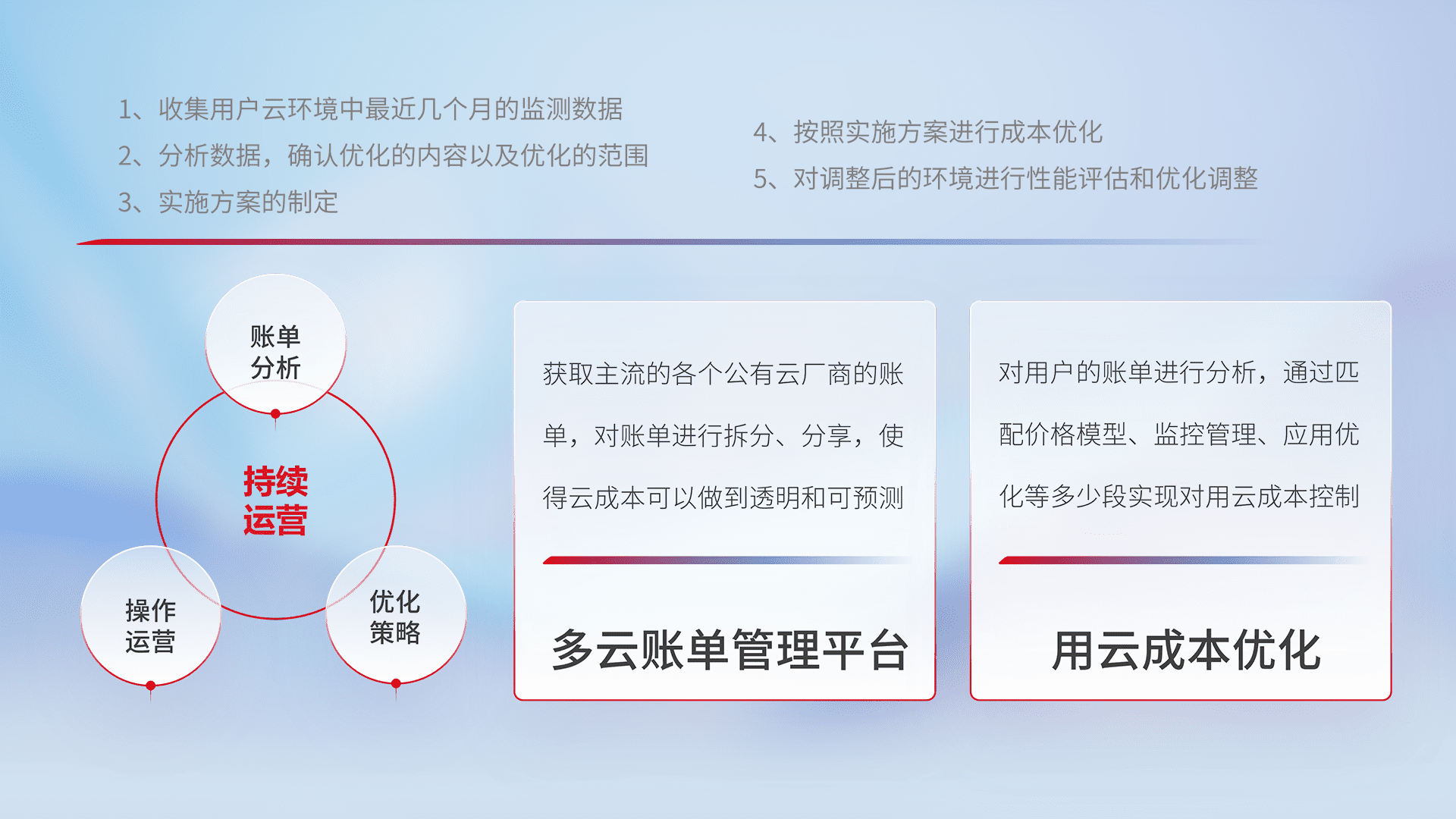 监控业务系统资源开销,,,对资源的消耗精确计量,,,实现费用的透明化管理,,,,不断提升资源使用率,,,调整资源购买方式,,,降低资源费用成本,,用云成本可预测、、、用云费用可优化,,,云资源配额有据可依。。